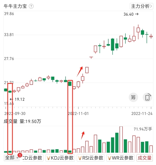 如图:股价的上涨,伴随着明显的成交量放大。